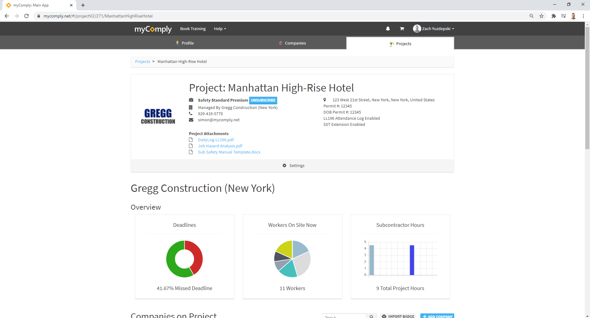myComply is a solution built to gather vital workforce and compliance data on construction projects. 4,000+ contractors trust myComply to easily exchange safety and compliance documentation with subcontractors on a project.