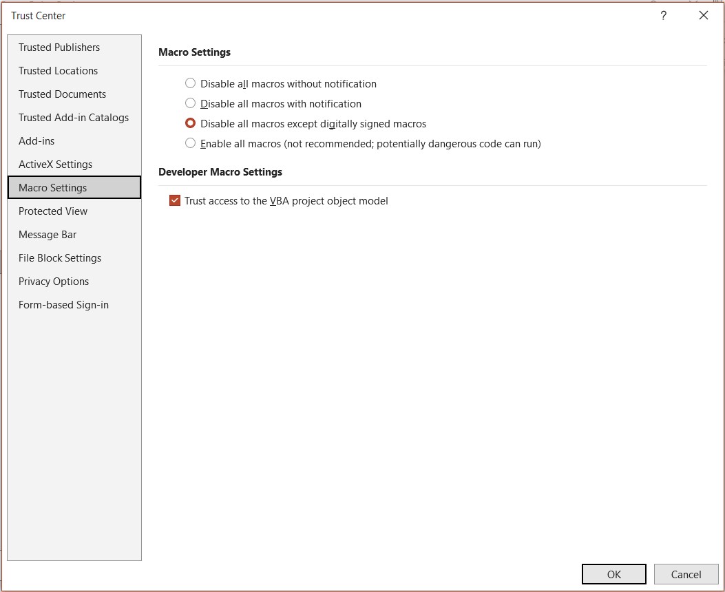 Dear Sean, Thank you for the download and trying out our app. Looks like for your Microsoft Power Point Application, you need to enable the Macros. Please refer to below instruction https://support.microsoft.com/en-us/office/enable-or-disable-macros-in-microsoft-365-files-12b036fd-d140-4e74-b45e-16fed1a7e5c6 1. Select the File tab and choose Options. 2. Select Trust Center, and then choose Trust Center Settings. 3. In the Trust Center, select Macro Settings. - Select Enable all Macros Developer Macro Settings - Select Checkbox - Trust access to the VBA project object model After the selections that you want, then select OK. We will also update our instruction in help document. If you have any further questions, please email me on rohit@cctech.co.in Regards, Rohit