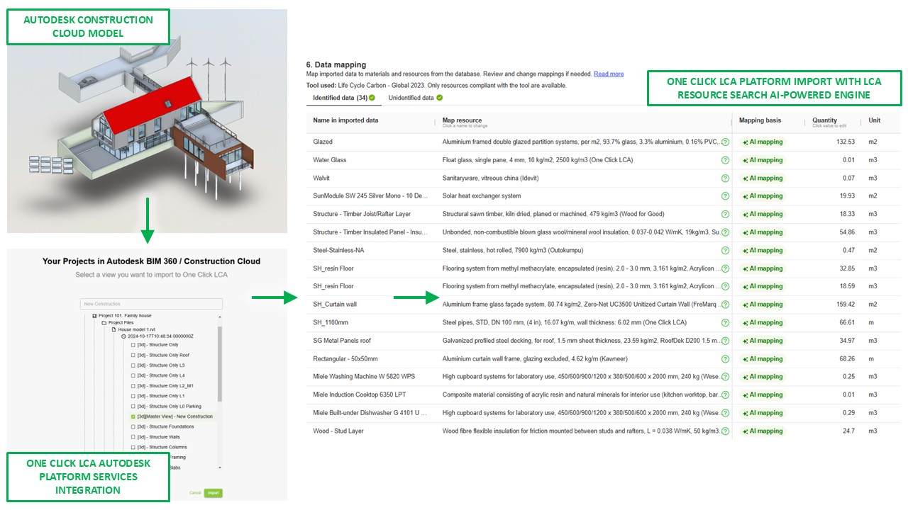 The One Click LCA plugin for Autodesk Construction Cloud® via Autodesk® Docs and Autodesk® BIM 360® delivers instant certification and standards-compliant LCA from your ACC projects.