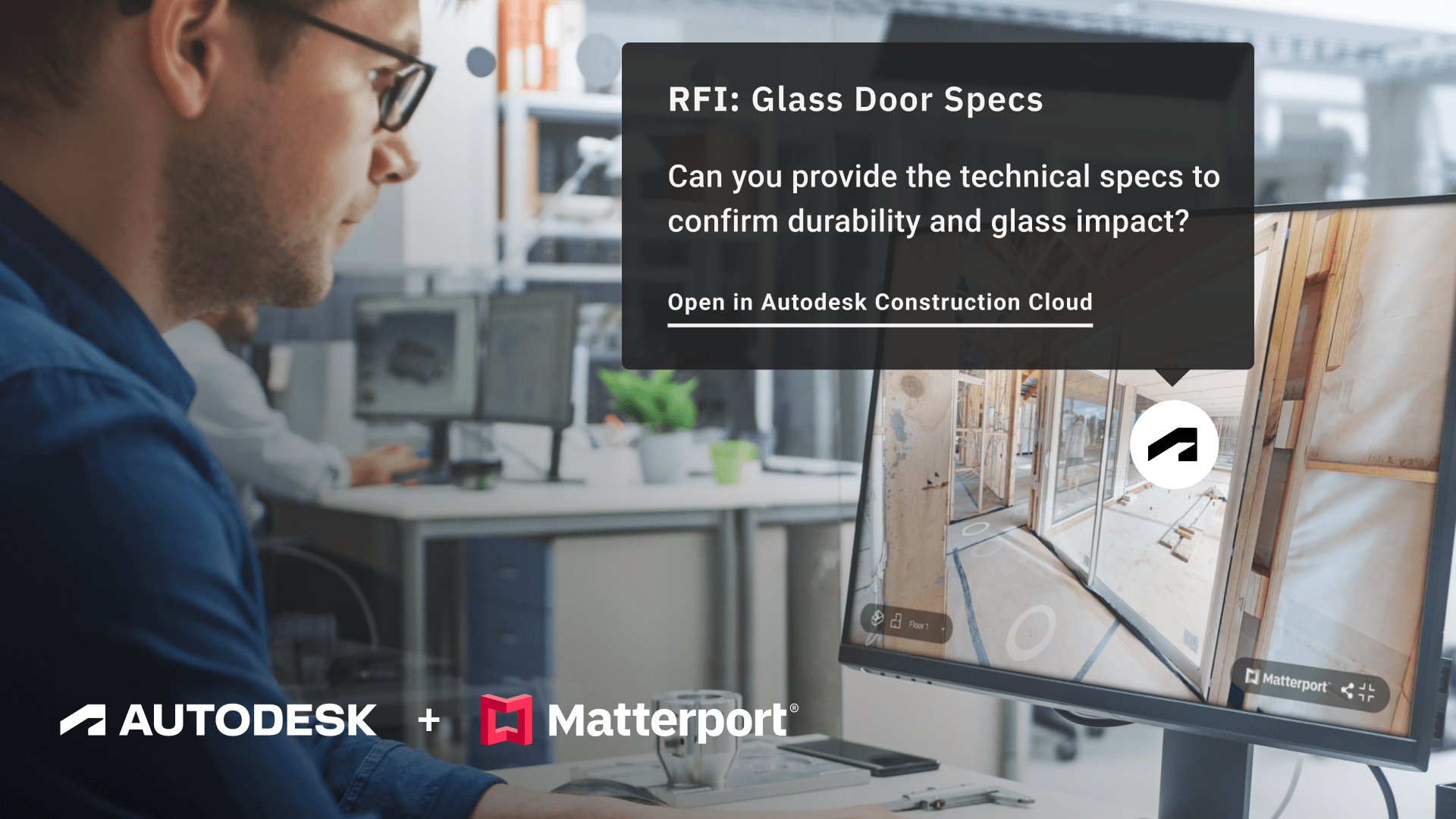 - Easily create, assign, and track issues RFIs in your Autodesk Build dashboard and Matterport digital twin.