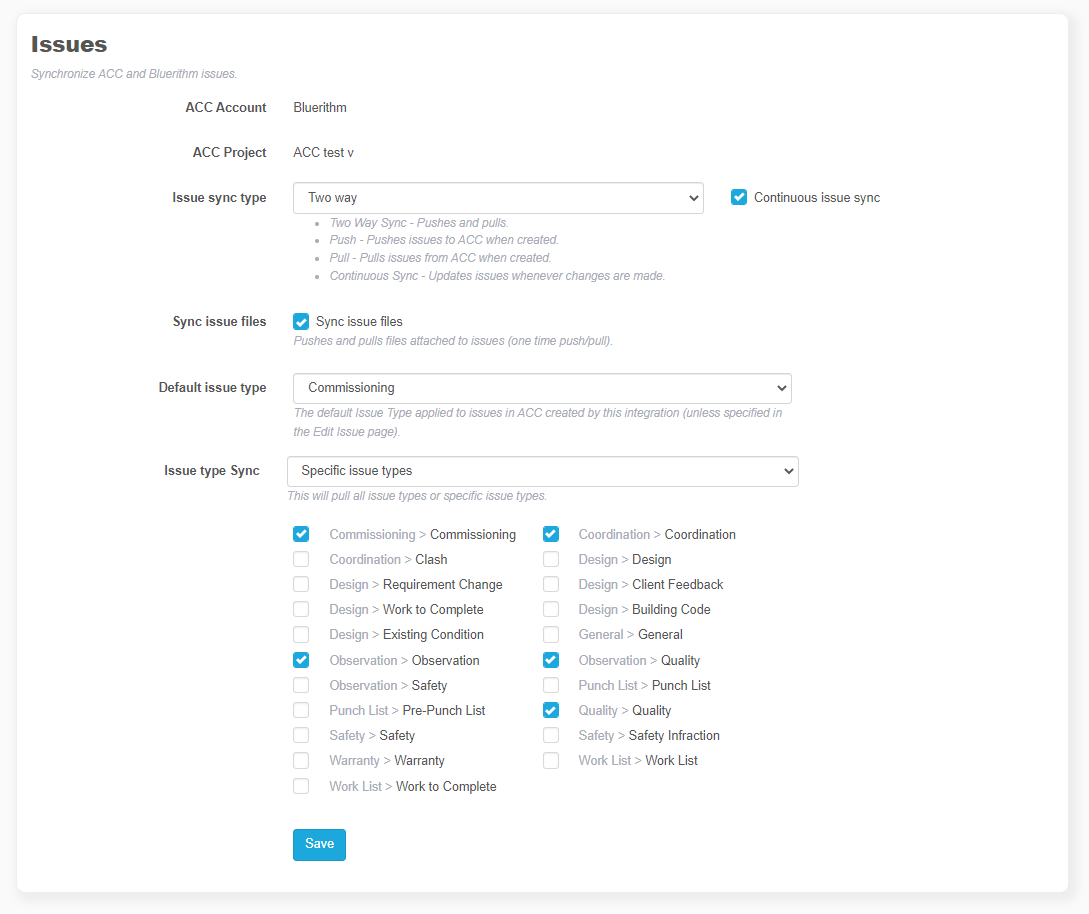 - Project Collaboration: With features like project member import and document synchronization (coming soon), you can enhance collaboration by seamlessly sharing and accessing information across the ACC and Bluerithm platforms.