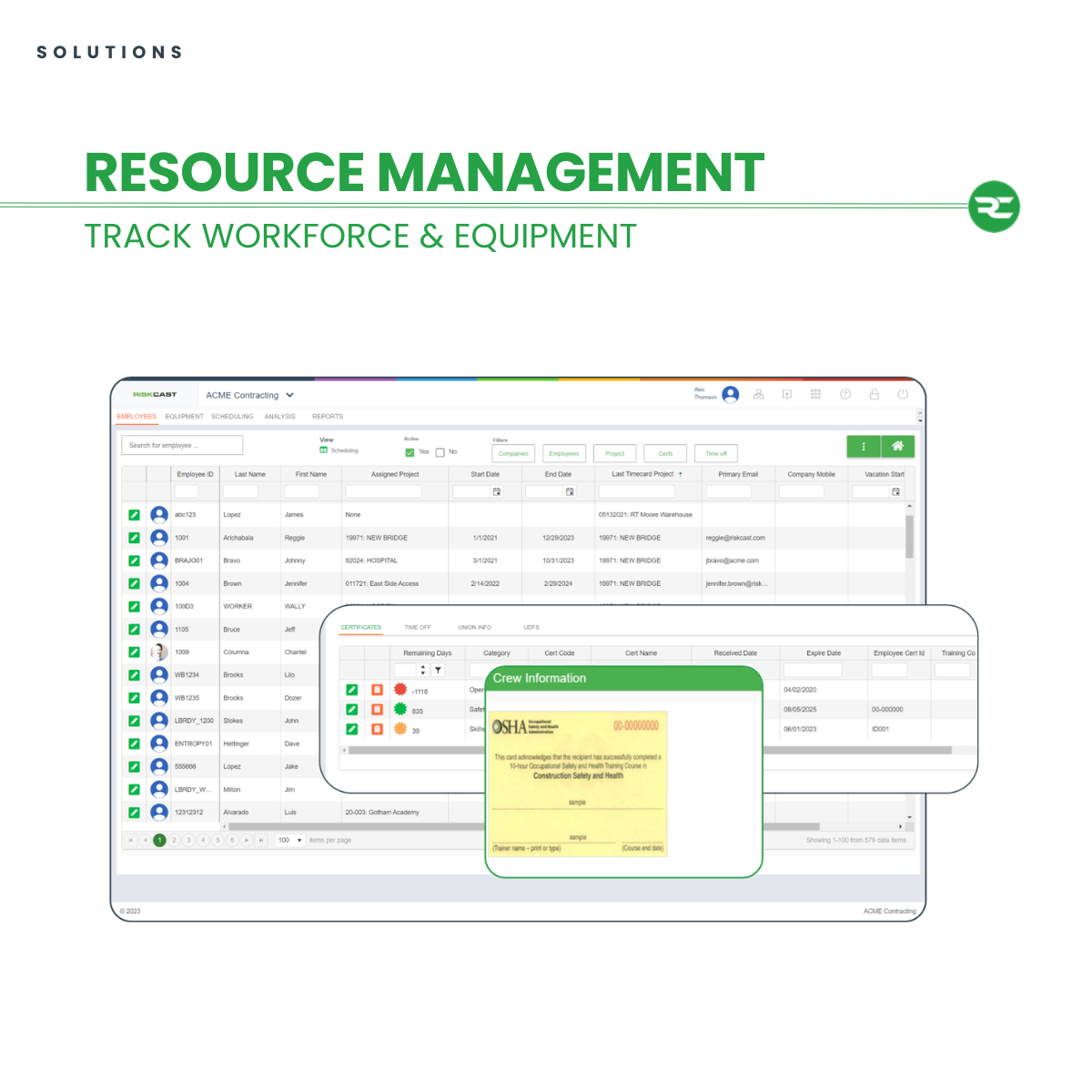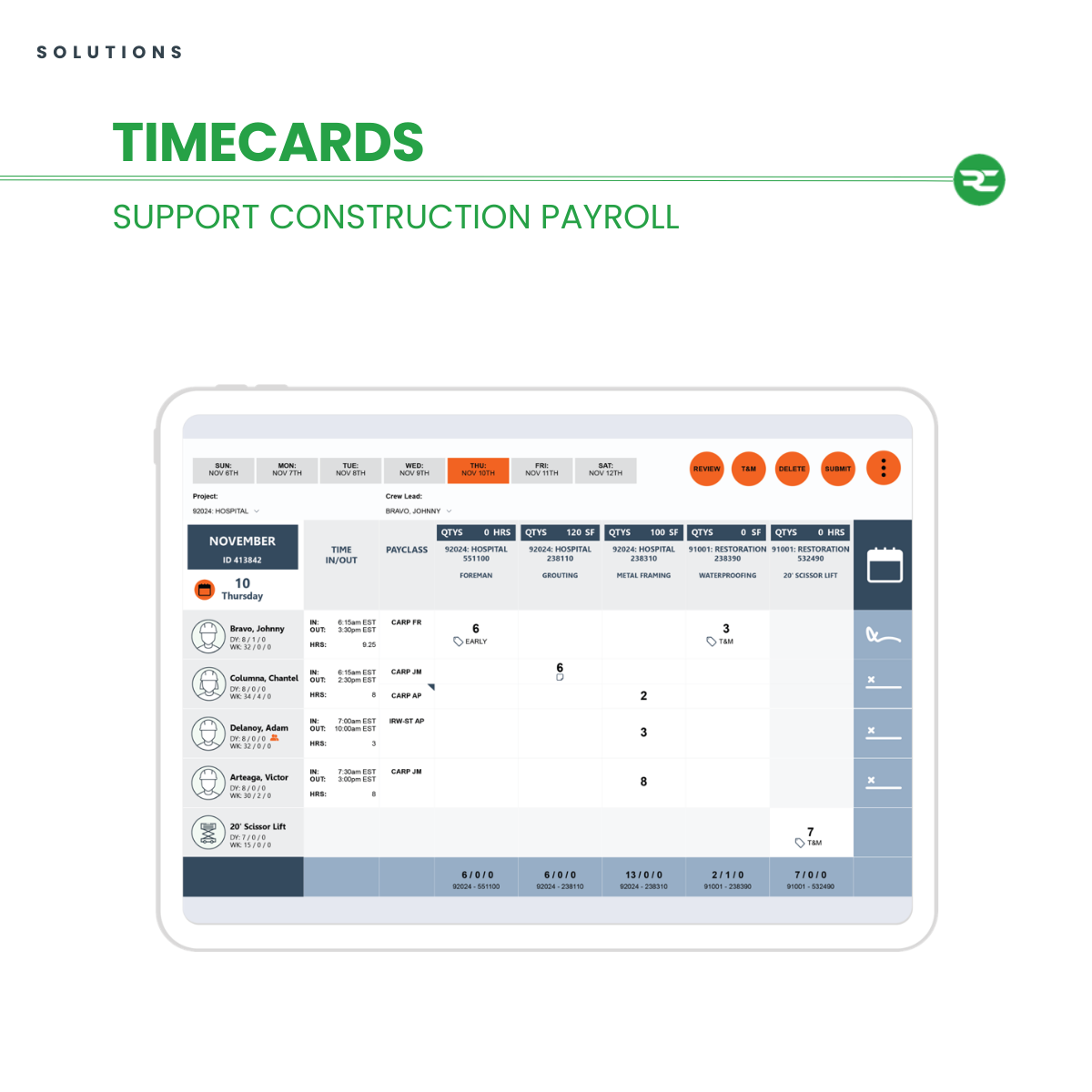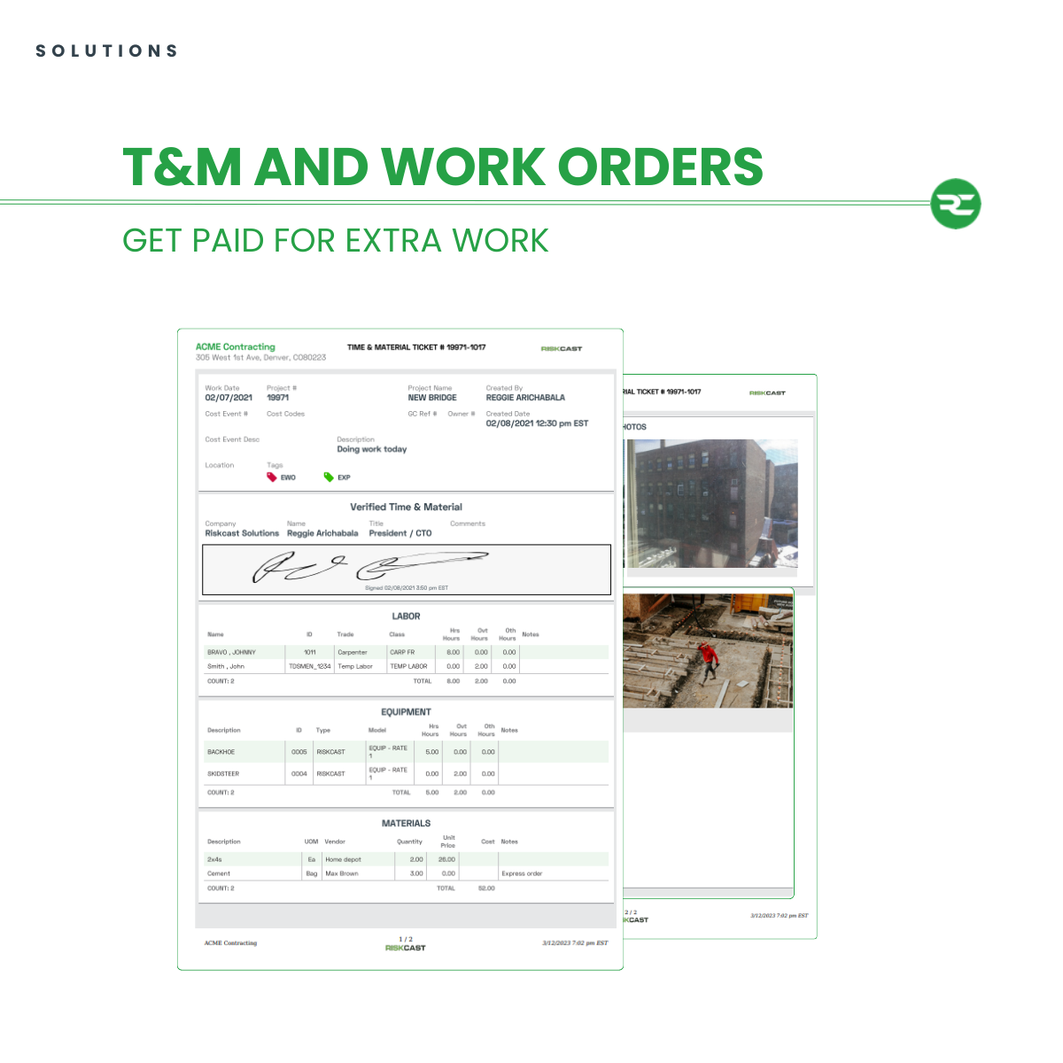 Riskcast provides a way for crews to easily capture labor, equipment, and production plus more, without multiple systems and complex spreadsheets. Use tools like Timesheets, T&M Tickets, Daily Logs, JHAs, and Attendance reusing captured data to eliminate double entry across tools. Plus connect with existing self-service integrations to sync real-time data with Autodesk's Performance Tracking to see actuals vs. planned in Cost Management. Riskcast ~ Collect it once, and use it everywhere.