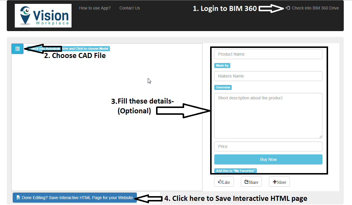 This app enhances your experience using Autodesk® BIM 360® 3D models and saves them for uploading to your website.