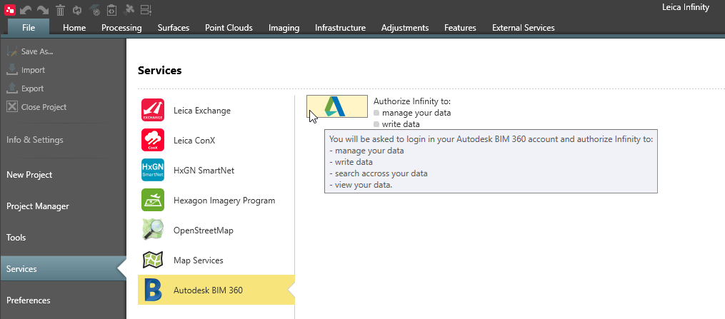 Leica Infinity is the user-friendly geospatial office software suite for the measurement professional. It is designed to manage, combine, process, analyse and quality check all field survey measure data, including total stations, digital levels, GNSS data and Unmanned Aerial Vehicles (UAVs). So whether it’s measuring new survey projects or preparing data for construction layout jobs, Infinity supports your workflow.