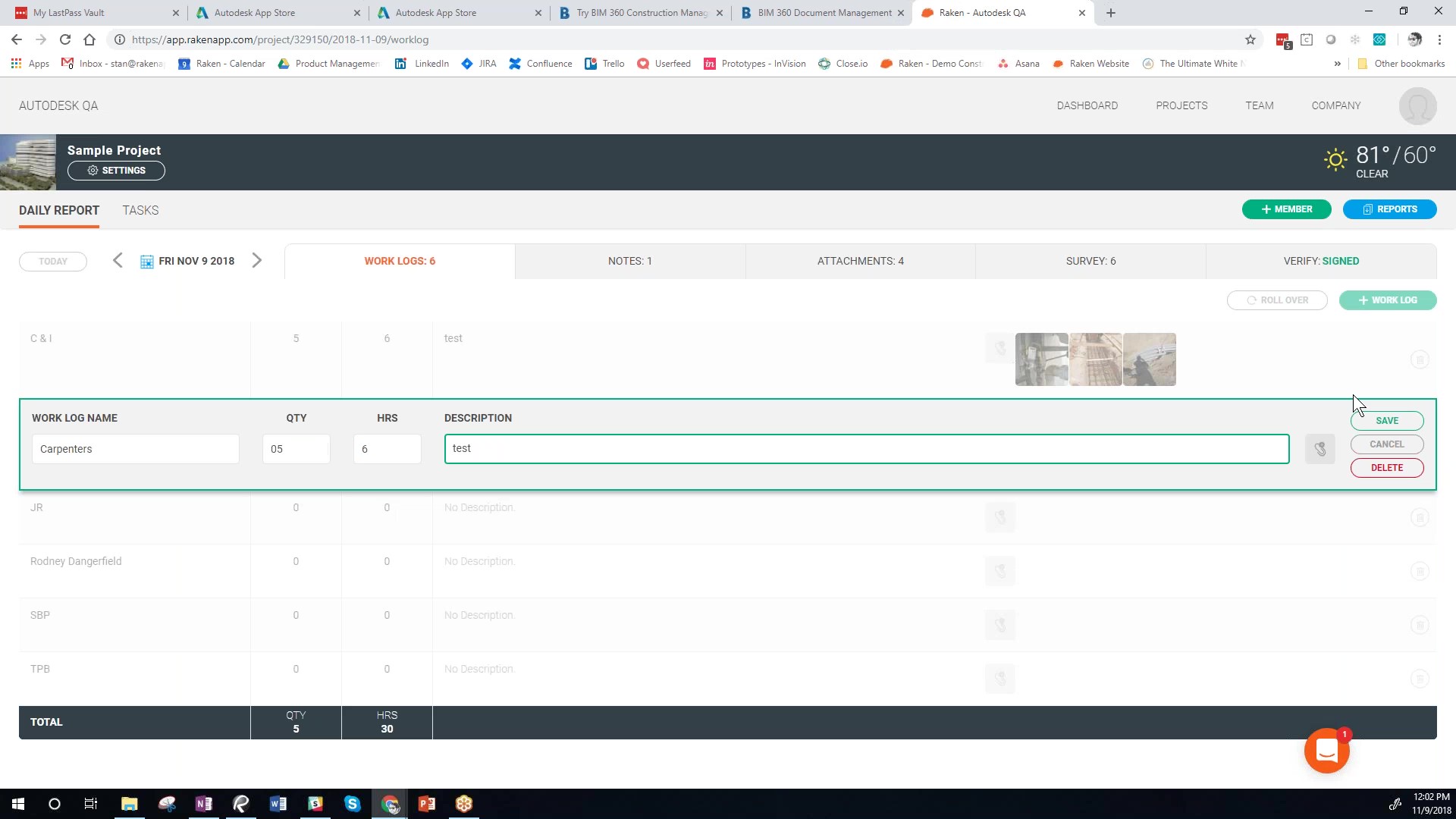 Raken provides innovative mobile technology to streamline field workflows for construction workers. Raken's "digital toolbox" connects the field to the office with daily reports, time cards, project insights, photo management, and more. With the Autodesk® BIM360® integration, all daily reports/photos/files captured within Raken are automatically synced into the BIM 360 Project Files folder. The user simply has to enable the integration from BIM360 settings, log in to Raken, and enable/authenticate the connection from our integrations page.