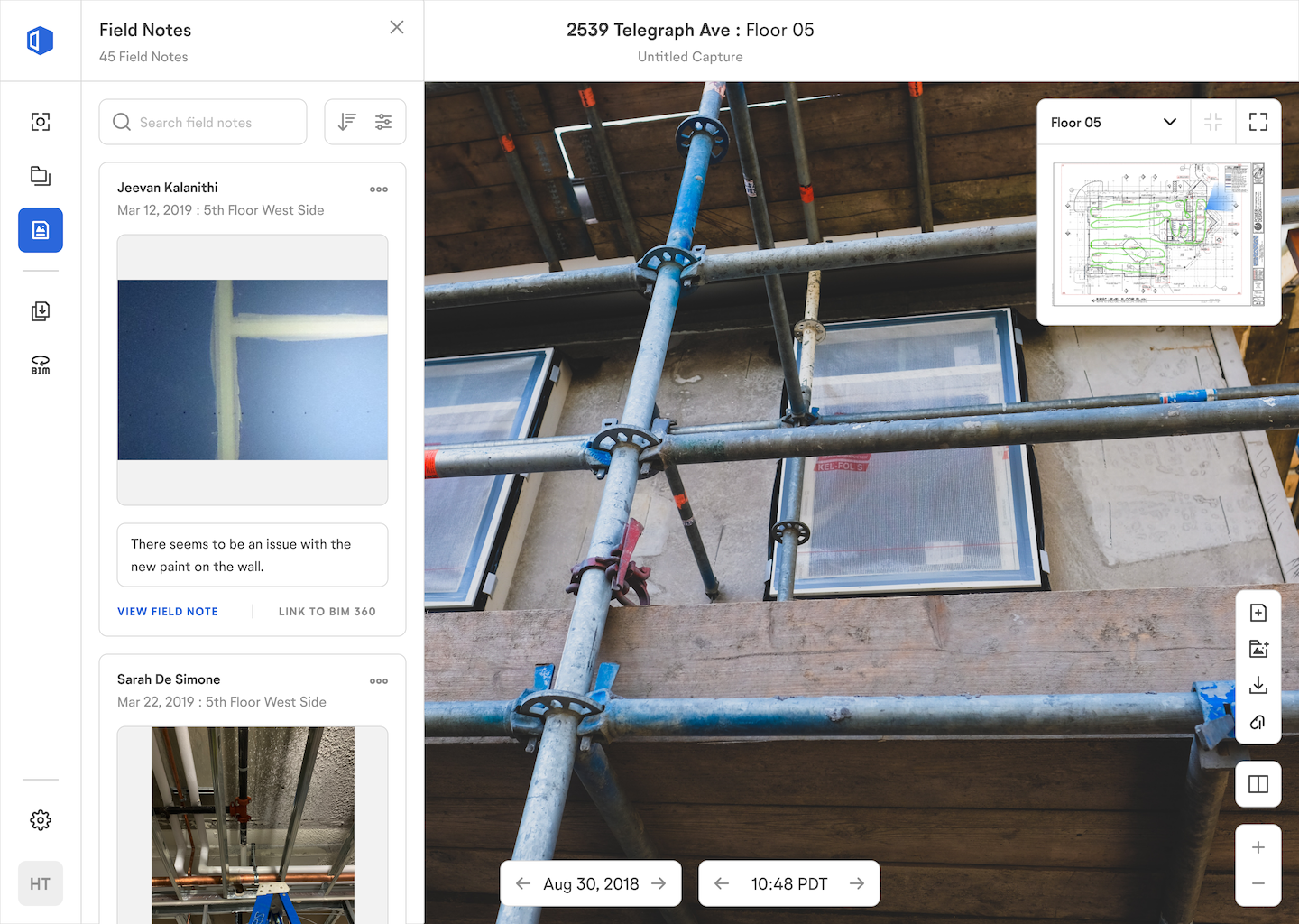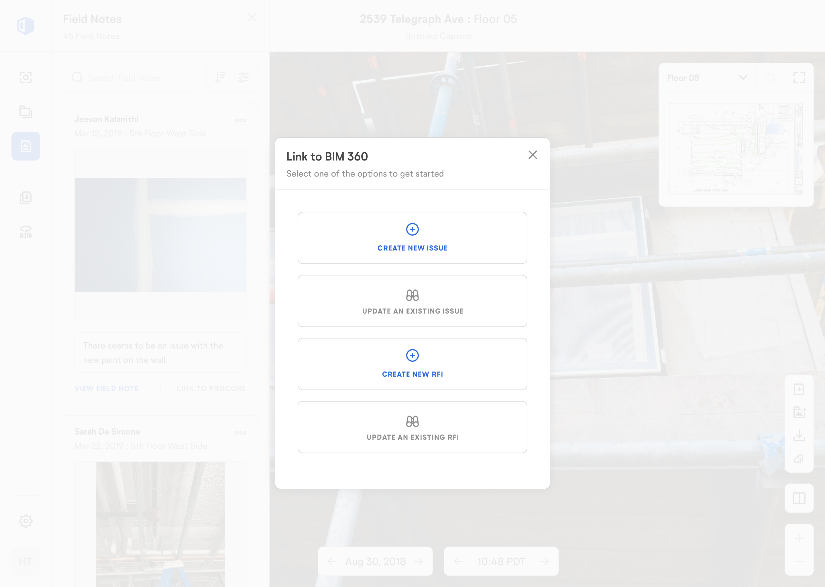 OpenSpace’s turnaround speed goes beyond photo documentation to unlock workflow improvements. OpenSpace seamlessly integrates with industry tools including Autodesk® BIM 360™, making communication, reporting, QA/QC, RFIs and pay apps more efficient. Use our “Link to BIM 360” button to bring data directly from the field into daily construction workflows, and use our fully featured BIM Viewer to do side-by-side as-built comparisons in just a few clicks.