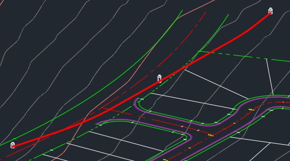 - Create a 3D polyline along the selected pipe network structures or pipe, using the top, center, or invert elevations of the pipes.