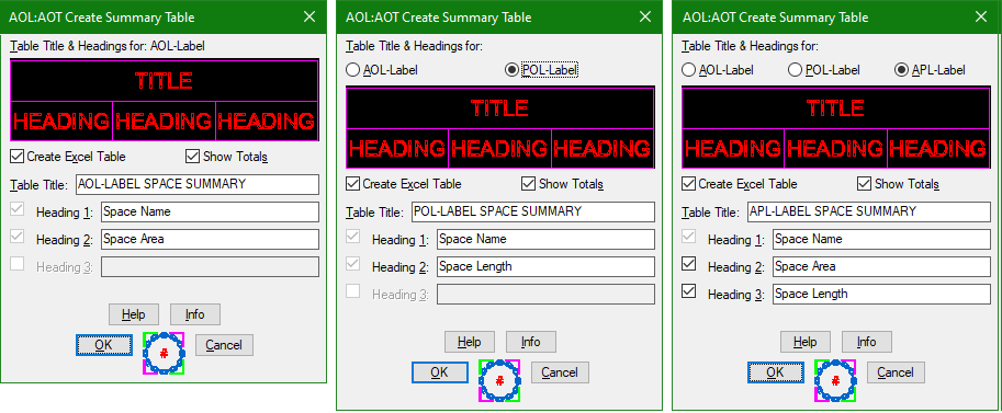- Options to generate and place the summary into Excel and show a row at the bottom with the Area/Perimeter value totals.