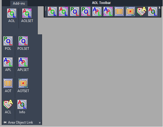 Area Object Link (AOL) is an add-in app coded entirely using AutoLISP®/Visual LISP® offering 100% Autodesk® AutoCAD® compatibility. AOL contains six command modules five of which offers a graphic user interface (GUI) to facilitate the implementation of Fields to link supported objects area/perimeter values.