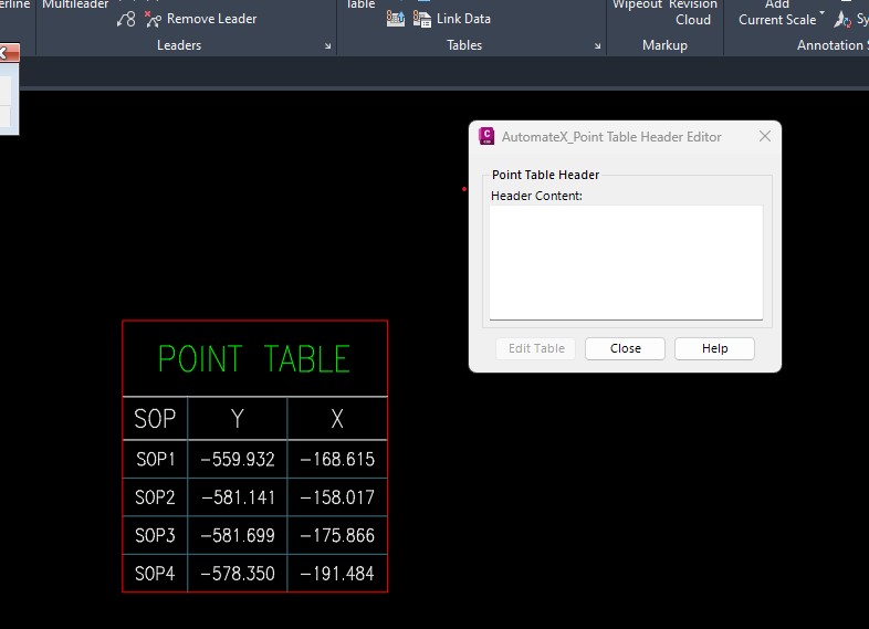 Point Table Header Editor