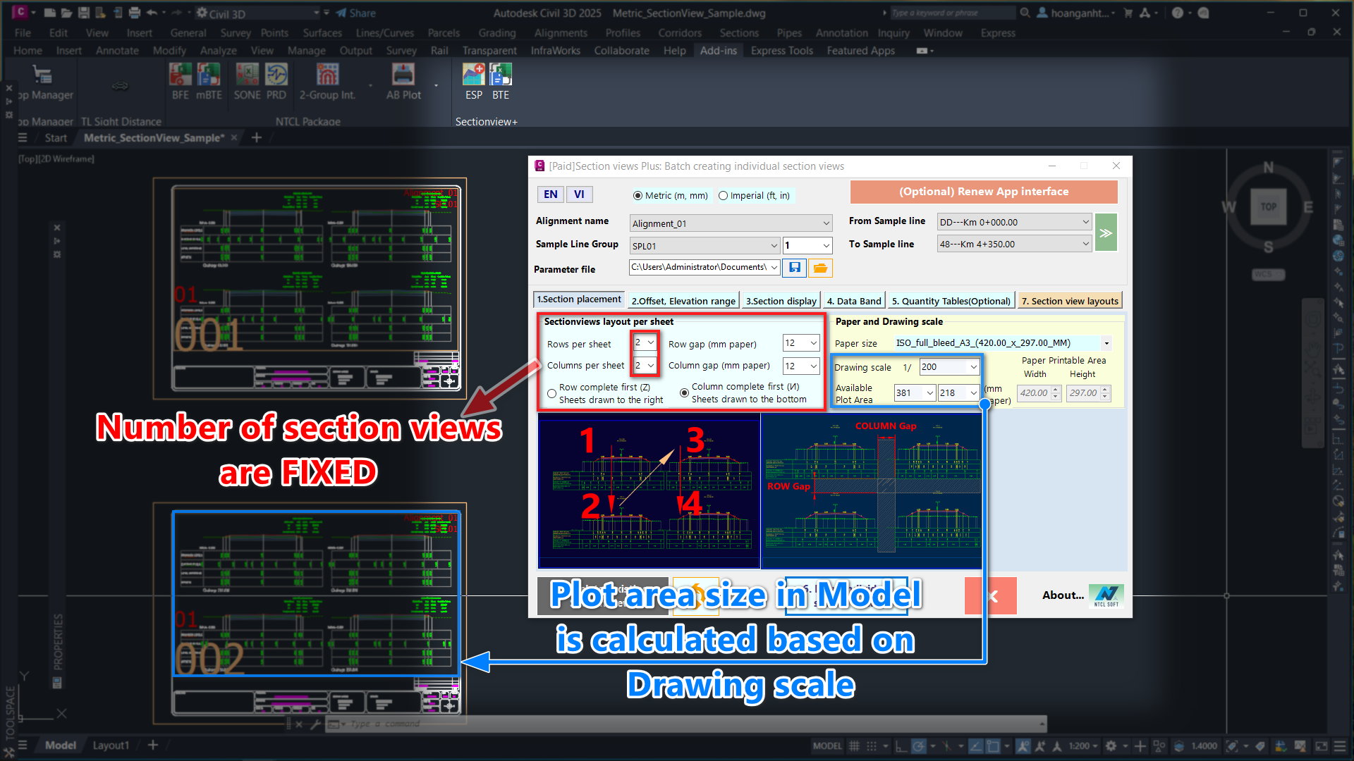 - Precise Section view layout: Number of section view rows and columns per sheet is fixed by users;