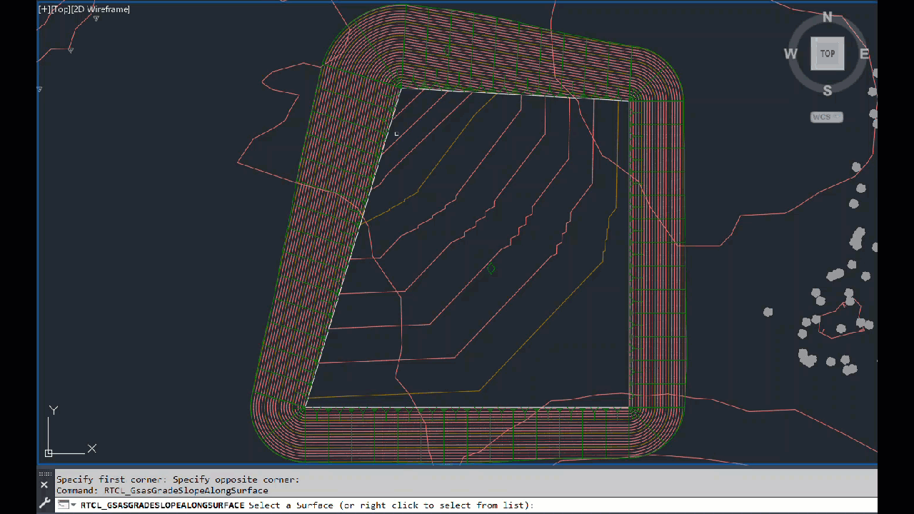 This app uses a unique algorithm that extracts data from the selected tin surface and performs trigonometry calculations to draw a 3D polyline along the tin surface at the desired grade/slope.