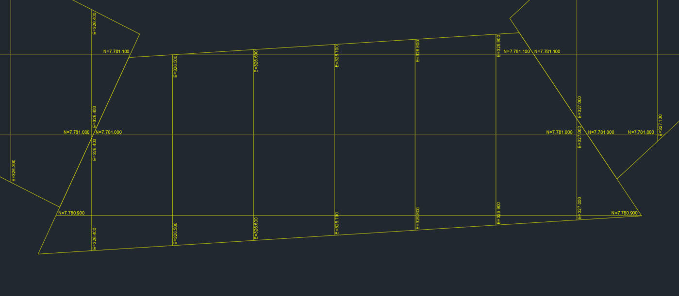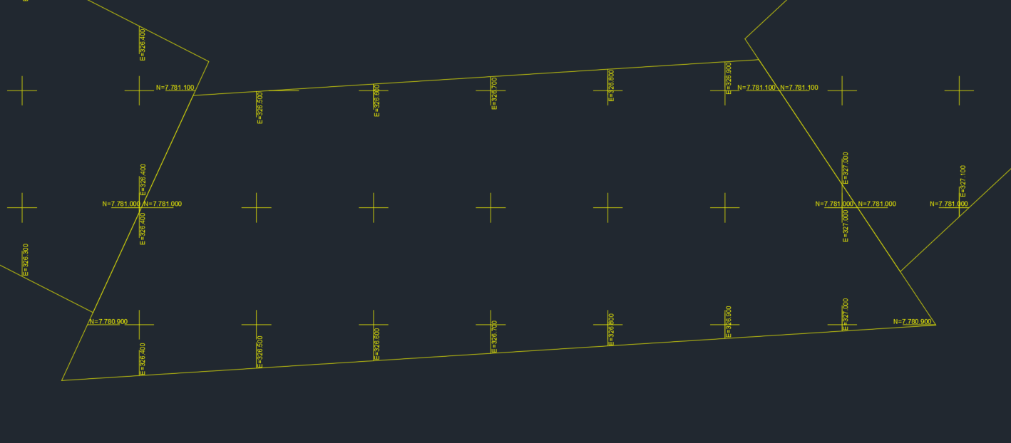 Create a coordinates UTM grid on closed polylines. The coordinate grid will display lines and labels for the x-axis and y-axis. The labels will be positioned at the beginning and end of each line.