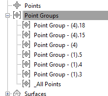The point groups are suffixed with a period and then an incremented number. Often times this creates numerous erroneous point groups that are not required to be present in the drawing.