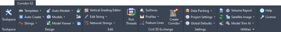 The Corridor EZ Toolspace is intuitive and simple to use, providing a one-stop-shop for you to create, edit and manage all your design objects. Select any object, or object collection, and right click to obtain a contextual menu of commands available for that object. No more hunting through menus or ribbons to get to the command or object you want