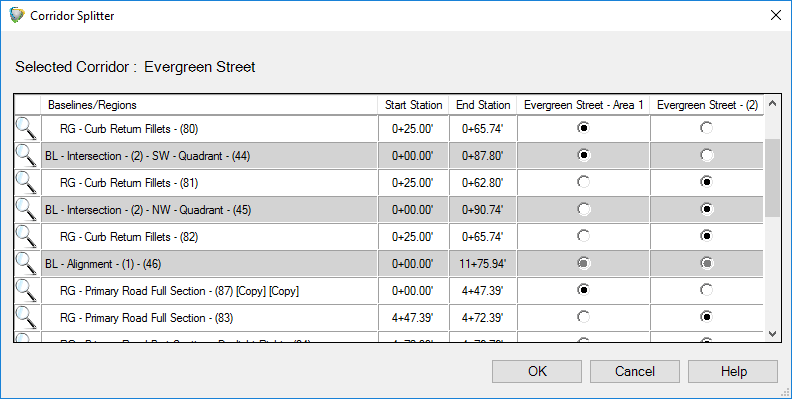 Automatically assign corridor targets by mapping subassemblies to layers, styles, object names or other subassemblies to create a dynamic link that updates the corridor as more target objects are created.