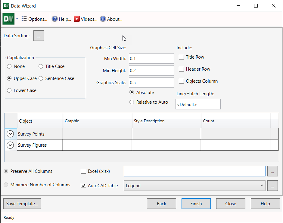 Data Wizard is a set of commands that help create Autodesk® AutoCAD® spreadsheet tables from AutoCAD and Civil 3D entities.