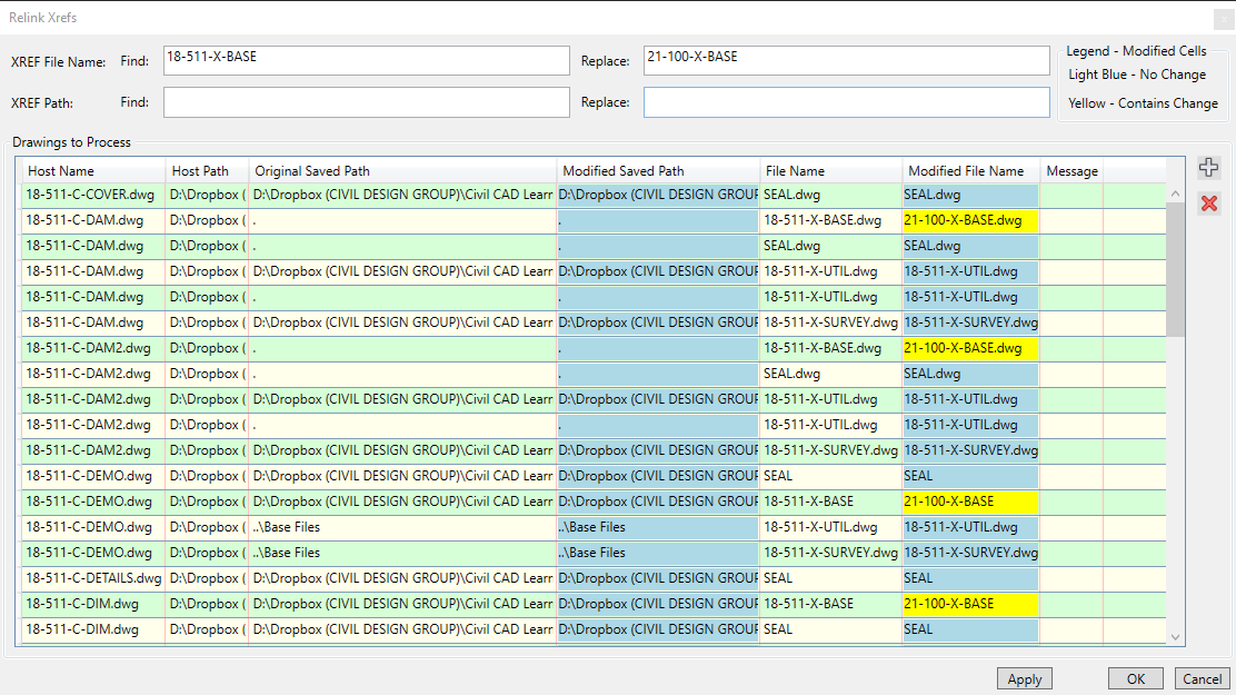 A tool that re-path or relinks external reference drawing paths for base drawing or drawing plan sheets.