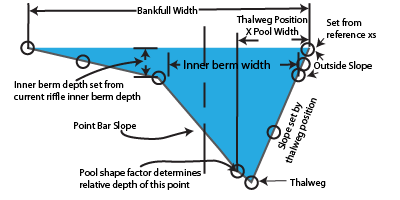 The inputs are based on reference reach parameters and provide user feedback to allow for design review. The most recent design iteration is stored within the alignment so rapid adjustments and design iterations may be performed for design optimization.
