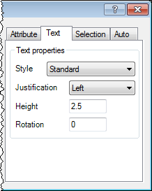 - The 'Text' tab is used to create a text object whose value is incremented at each insertion. The user can set some text properties (text style, justification, height, and rotation).