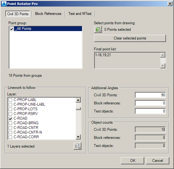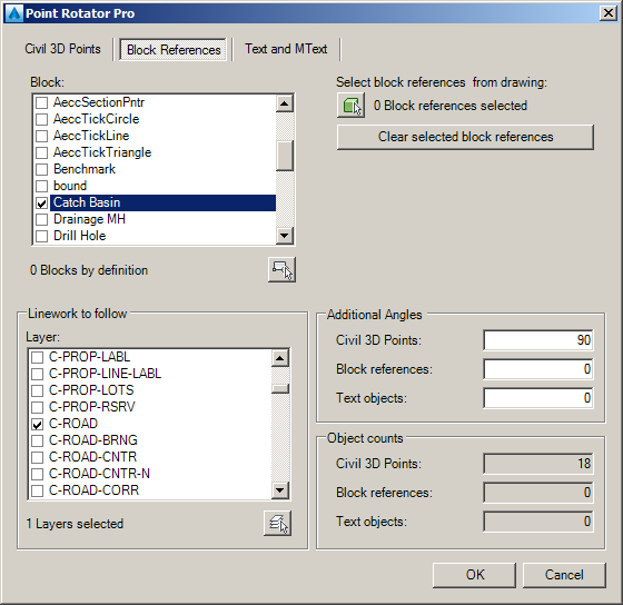 In addition to Civil 3D Points, it also supports rotating Autodesk® AutoCAD® TEXT and BLOCKS.