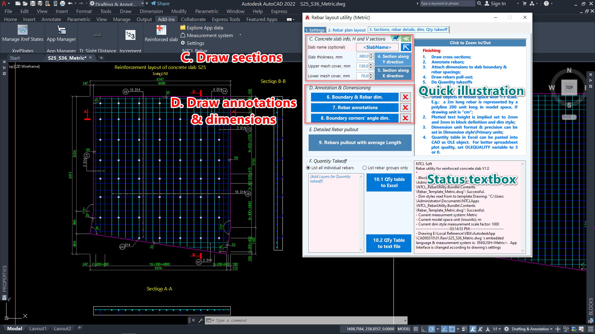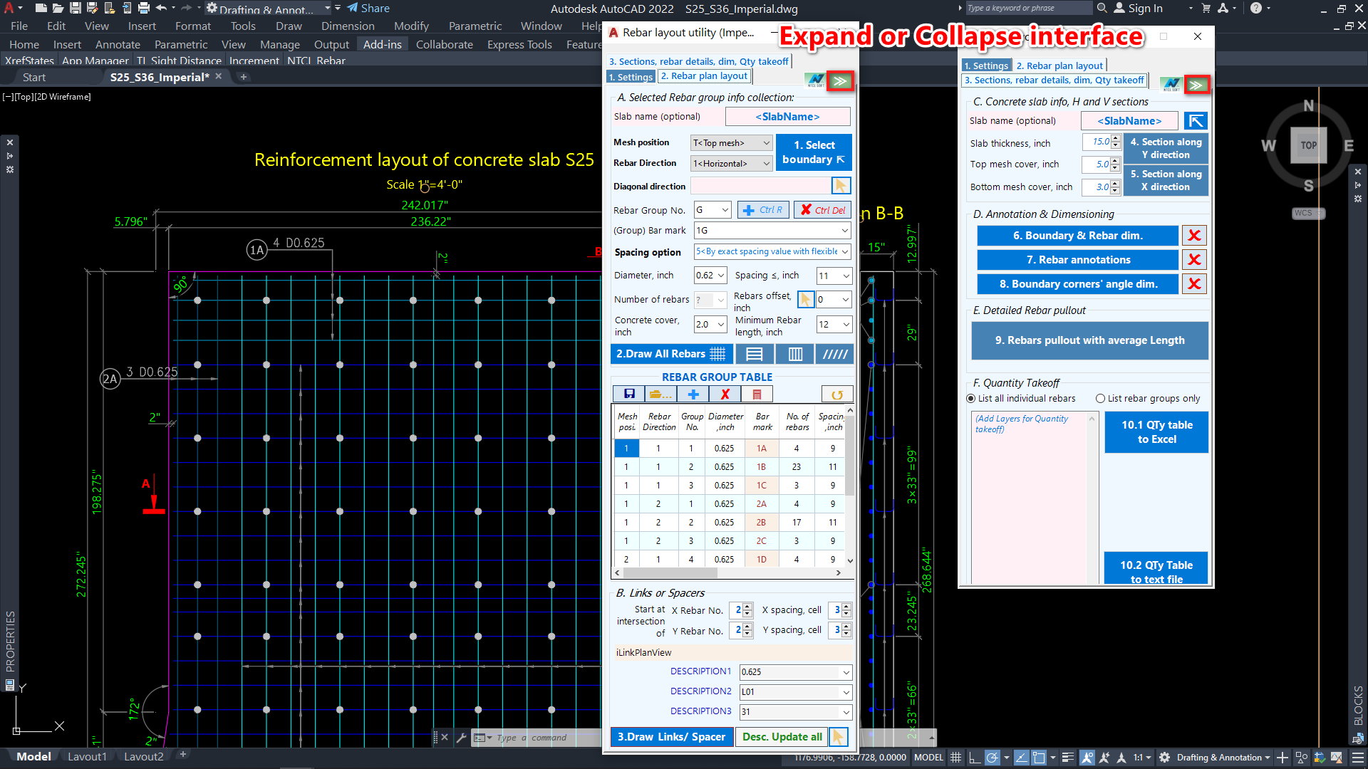 To draw reinforcement for a typical concrete slab of highway/airport pavement or for a bridge deck is quite simple. However, this task may become a nightmare when the number of irregularly shaped slabs increases.