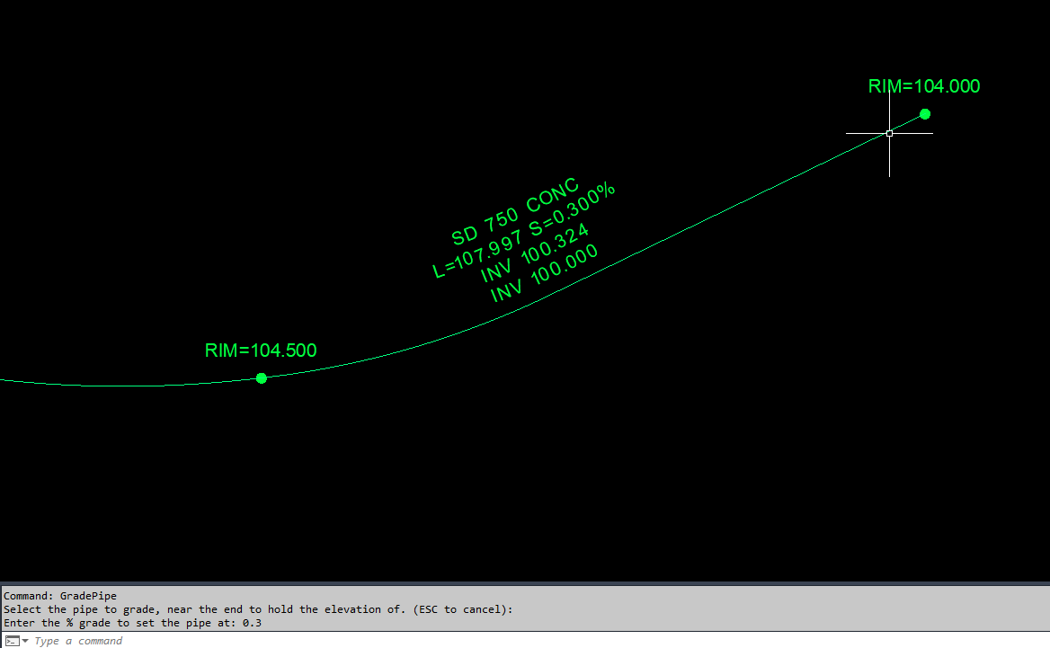 Set the grade of pipes simply by selecting them and entering the desired grade, extending the grade through null structures until the next structure in the network that isn't a null structure.