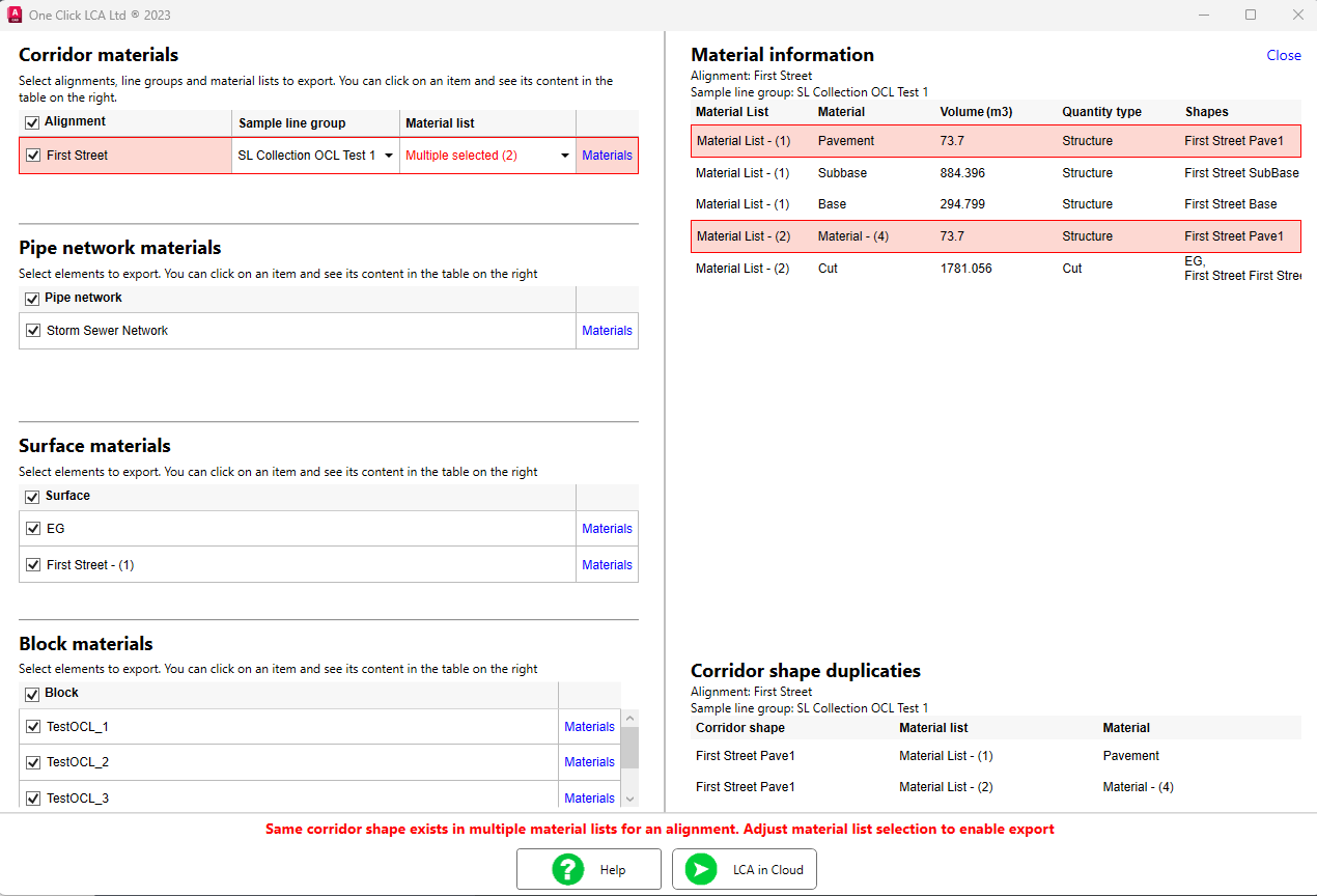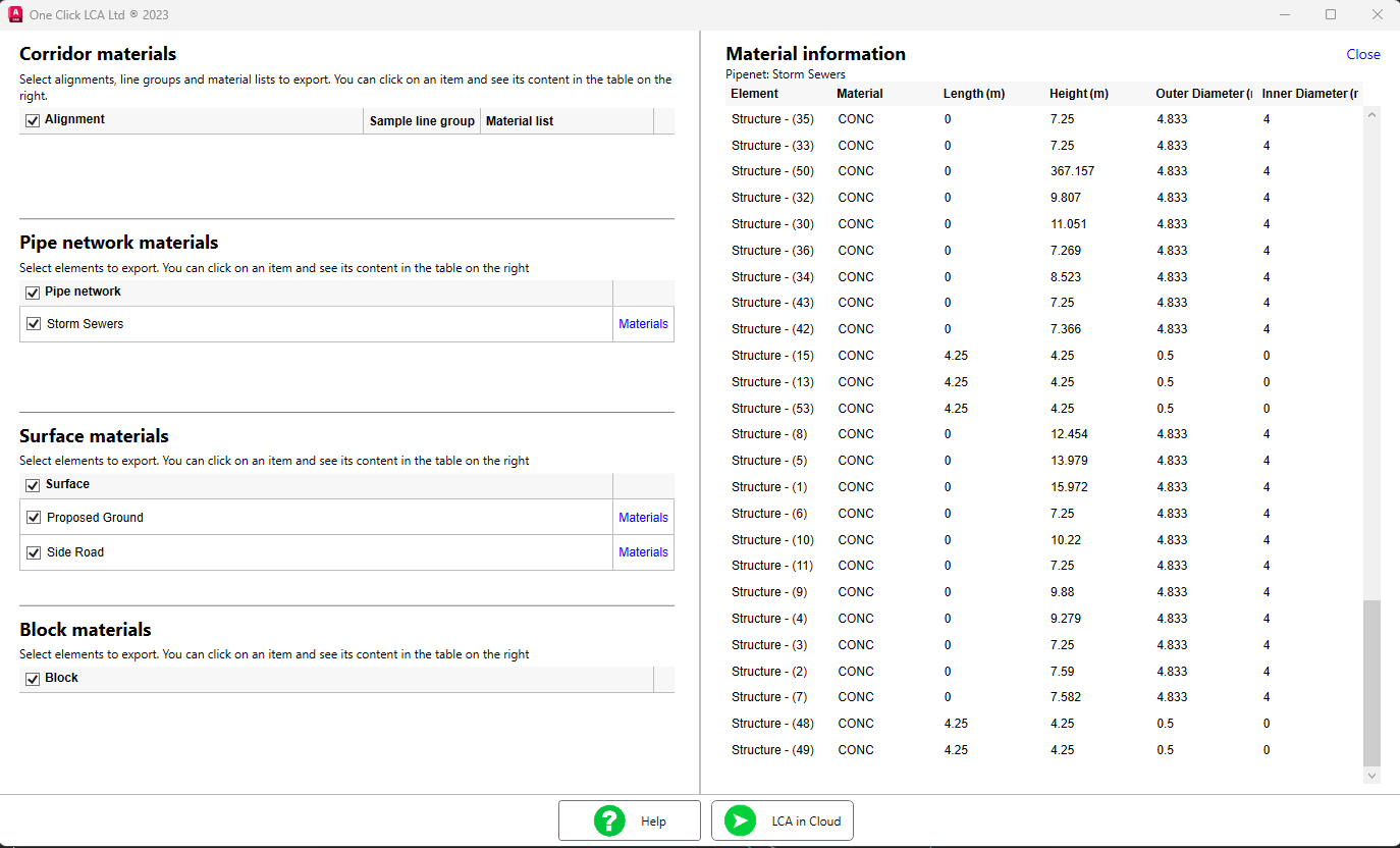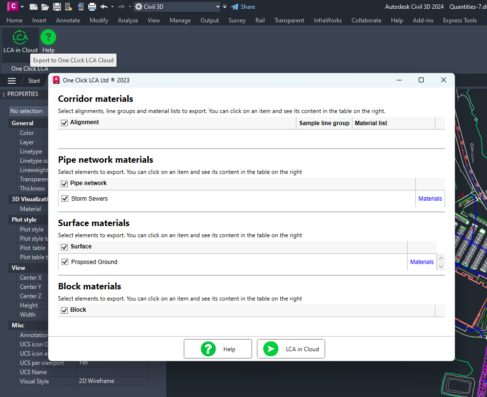 The One Click LCA plugin for Civil 3D delivers instant certification and standards-compliant LCA from your Civil 3D models. The plugin works with Corridors, Pipe networks, Blocks and Surfaces. The plugin connects automatically to the One Click LCA cloud service, automatically detecting the materials used in your models and calculating their environmental impacts.