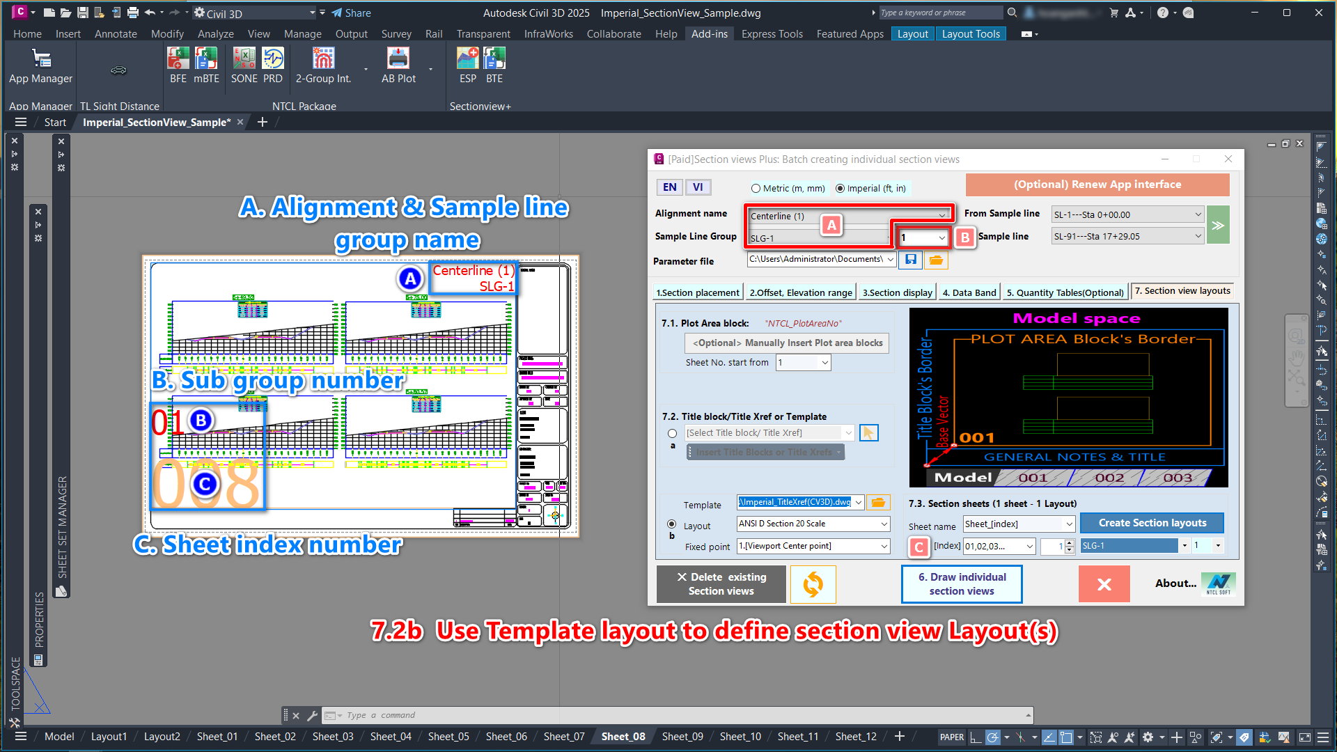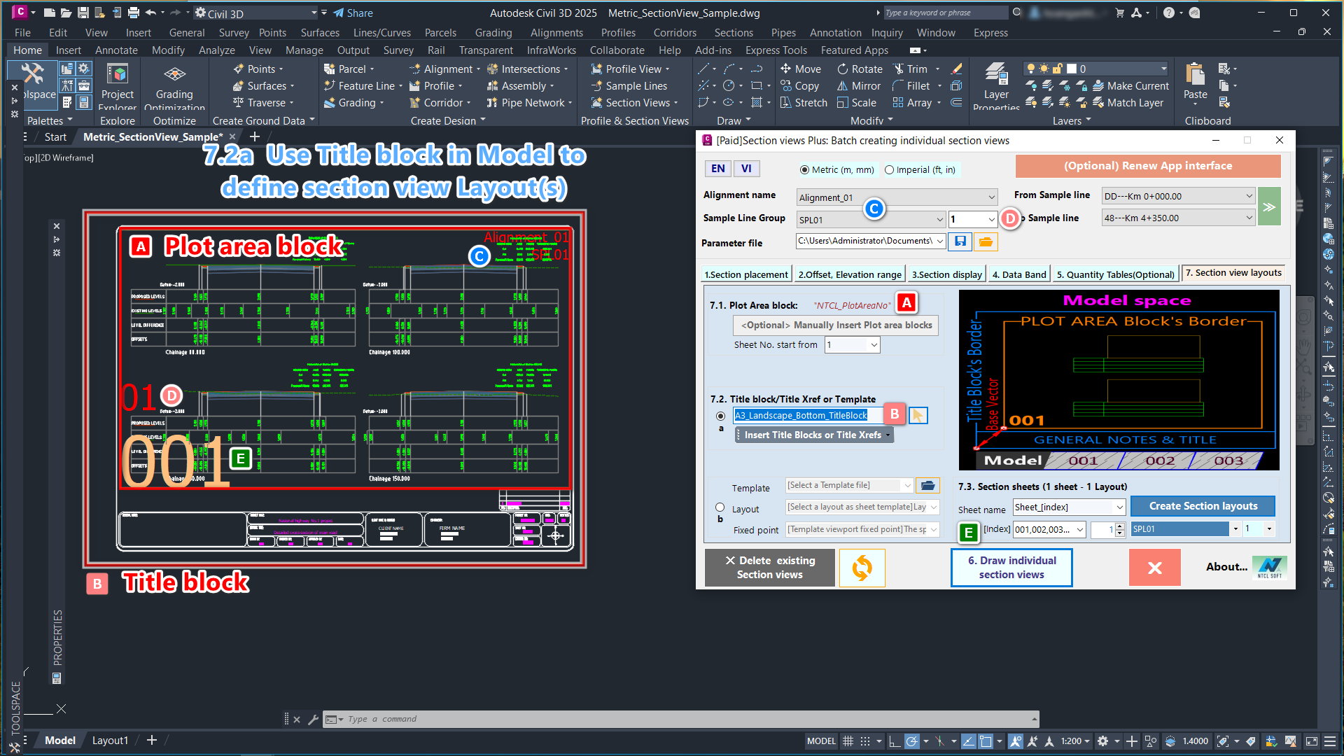 - Ability to create section view Layout for individual section views; ready for plotting or creating sheet set;