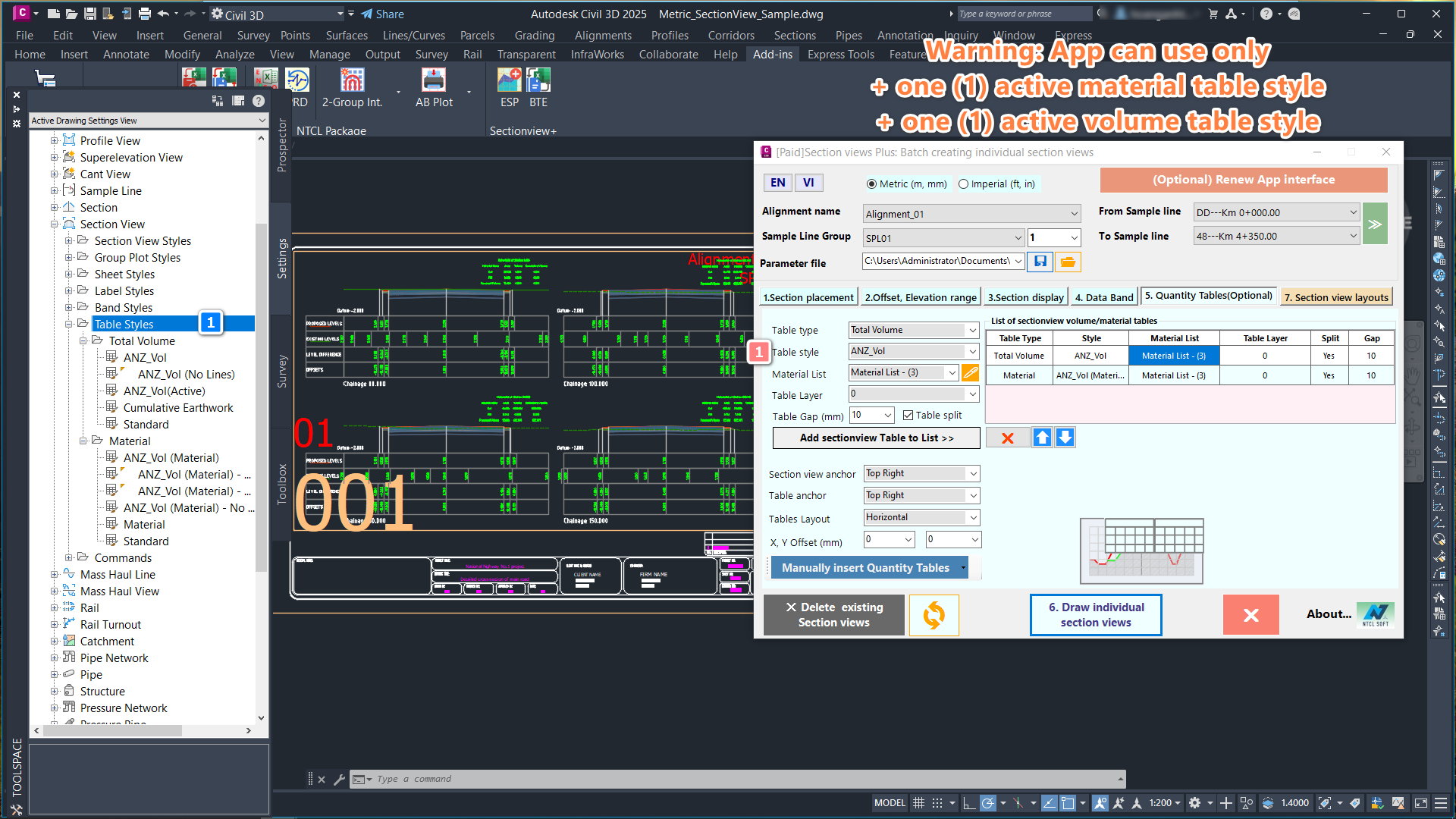 Section view creation in Autodesk® Civil 3D® is quite complicated with lots of parameters. This app will help ease the section view task by making use of individual section views and adding the following features: