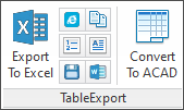 This tool includes an easy-to-use MSI install file. Simply double-click to launch the install and restart your Civil 3D. The table export tool contains multiple output options. Here is an example of the ribbon provided and a table of the tools included in the task.
