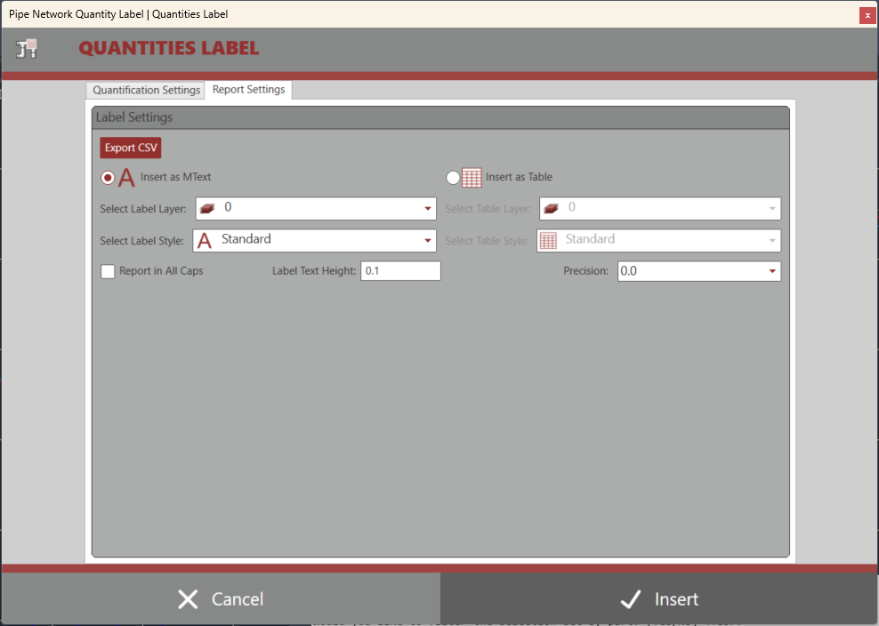 This app offers the ability to quickly select network parts through multiple selection options with ability to filter out parts, then to be able to quickly summarize a quantity list of those parts as Mtext, Table or CSV file. Quantities are gathered by PartSizeName or Part description, Pipe Lengths of 2D/3D Center to Center / edge to edge, Structure quanties, and abilty to quantify depths below a specified surface.