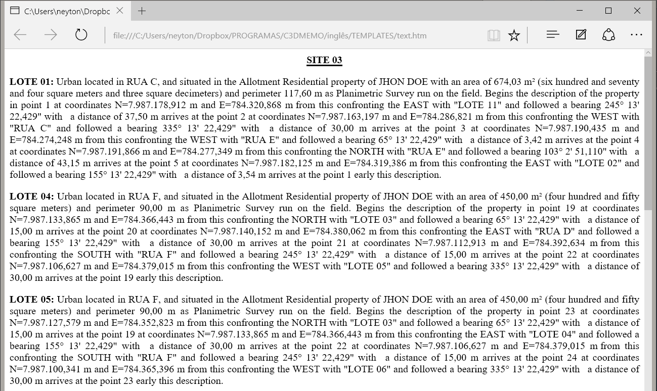 The program interprets and reads the polygon, determines the front, back, right, and left sides, can show the vertex coordinates in UTM or Latitude/Longitude, can display numbers written in full, can create statistics of batches and blocks, etc.