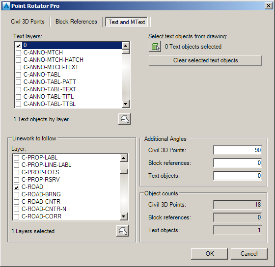 In addition to Civil 3D Points, it also supports rotating Autodesk® AutoCAD® TEXT and BLOCKS.