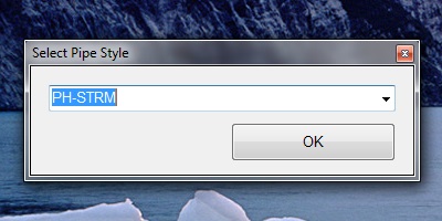 Once the parts have been selected, a dialog box will appear with a drop down list of all the available pipe/structure styles that can be applied to the parts. Hitting OK will apply the selected style in the list to parts specified.