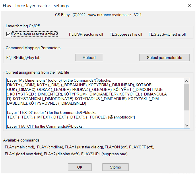 Flay is a force-layer reactor for Autodesk® AutoCAD®, which automatically places predefined objects (drawing commands or specified blocks) to predefined layers.