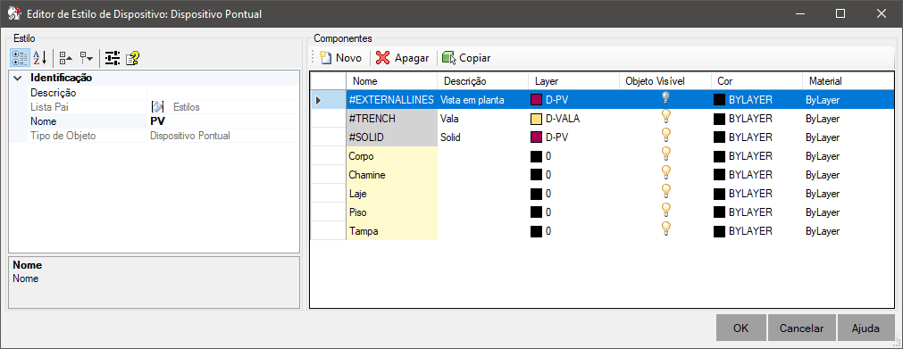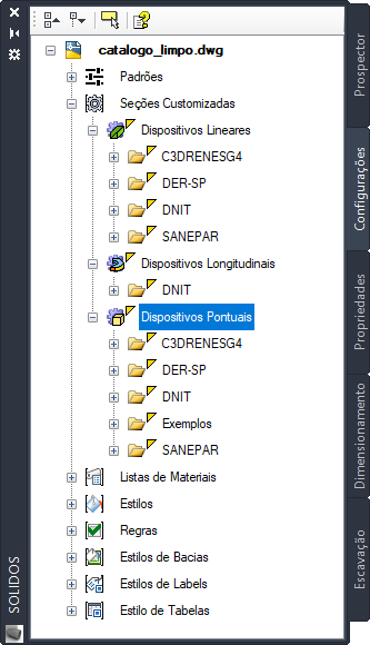Pensando em atender o mercado nacional, o plugin SOLIDOS possui um catálogo de peças compatíveis aqueles vistos no Album de projetos tipo do DNIT e um catálogo de peças compatível com o Album de dispositivos do DER - SP, mais completo.