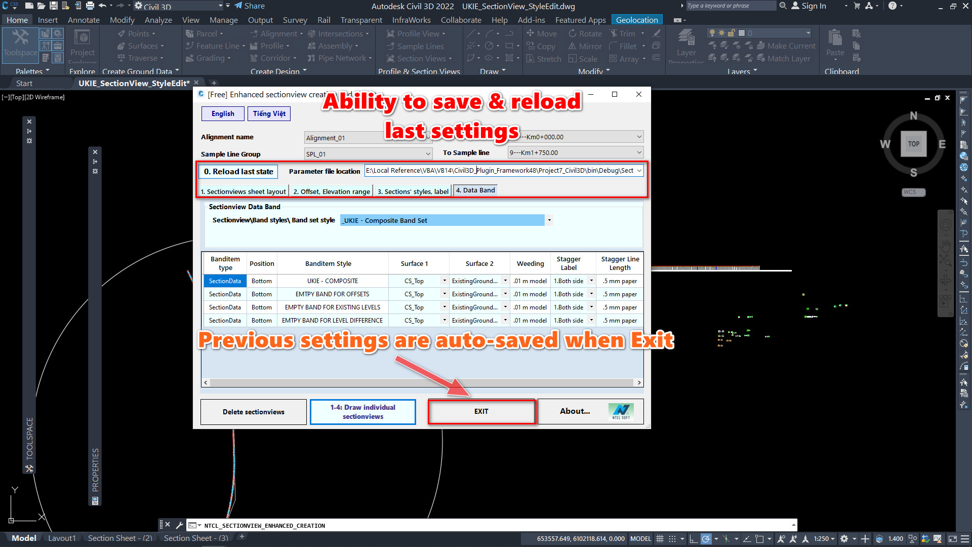 Your App provides very clear explanation about section view parts. The new elevation range setting method is awesome. The only limitation is this App only supports individual section views.