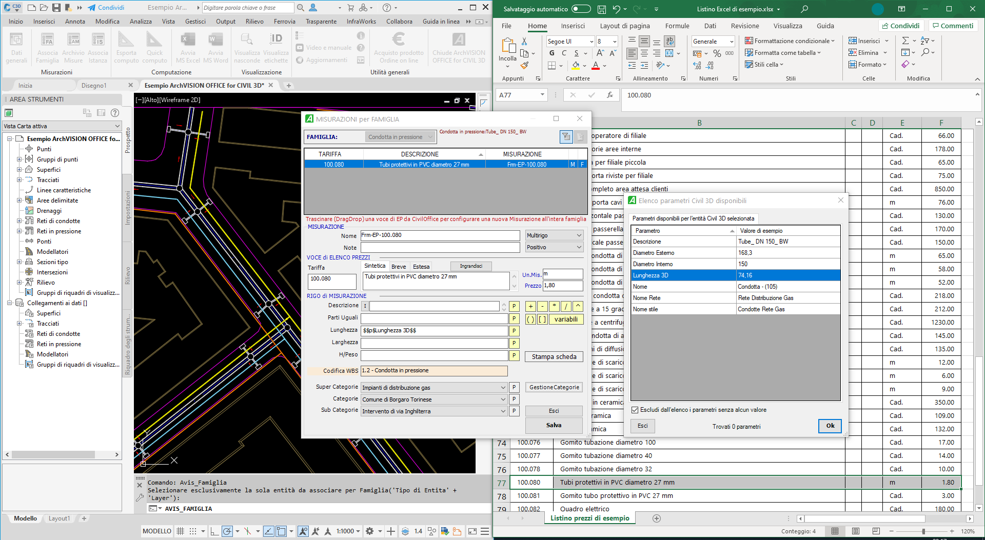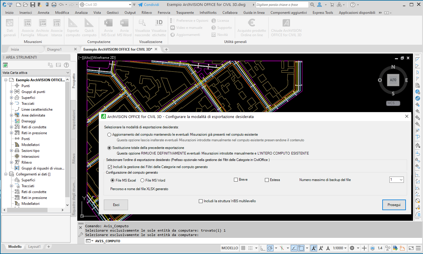 ArchVISION OFFICE for Civil 3D 26.1 è il plugin per la redazione del computo metrico che rappresenta la massima flessibilità professionale poiché sfrutta l’interazione di Civil 3D con la suite di Office Automation più diffusa a livello internazionale, senza la necessità di utilizzare altri software specifici e genera il computo nei formati Excel (XLSX) e Word (DOCX), così da consentire la più ampia versatilità nella condivisione del lavoro di computazione.