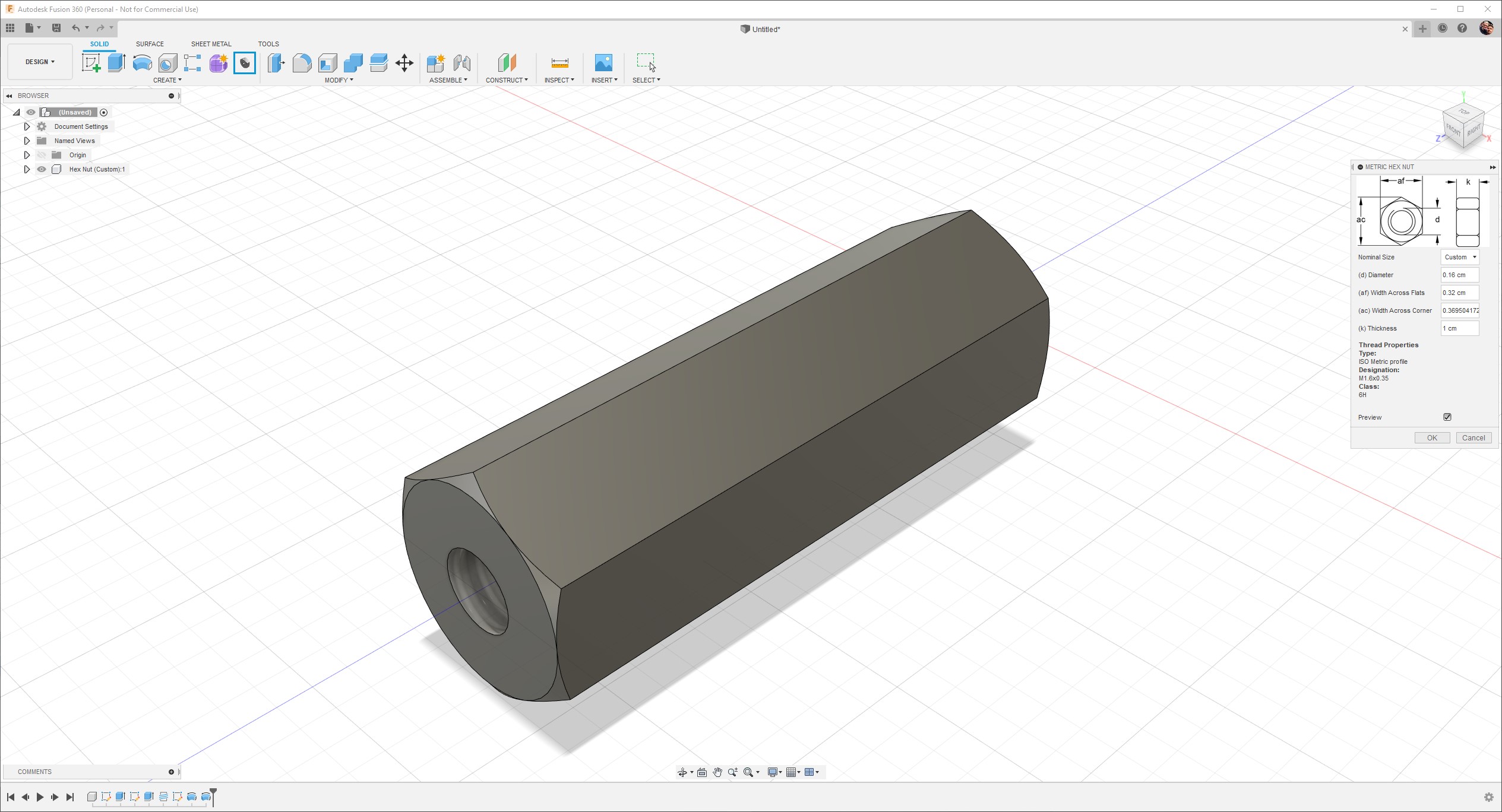 Simple and easy to use! Metric Hex Nut Generator allows you to switch between the most popular Metric Hex Nuts configurations, and if you want something different you can customize your own configuration!