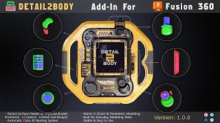 Detail2Body is a powerful Fusion add-in that extracts surface details from solid bodies and converts them into separate Joiner and Cutter bodies. Perfect for kit-bashing, 3D printing, and design reuse.