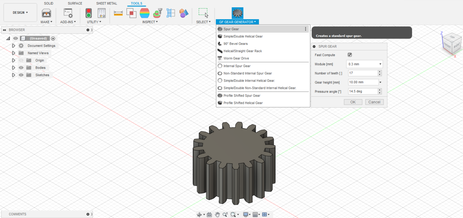 Summary: If you want a quick and easy way to generate 3D models of a wide variety of gears in Fusion360, this tool is great. If you plan to manufacture (e.g. 3D print, CNC, etc.) the gears for a physical object in real life, you should pick a different plugin (more on that below).