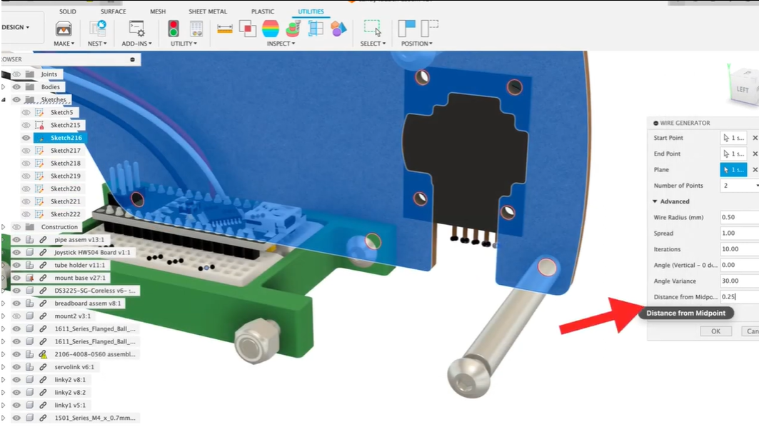 Distance from Midpoint: Perpendicular distance of the generated spline points from the Start-end line midpoint —— Scalar of preset value, not based on mm)