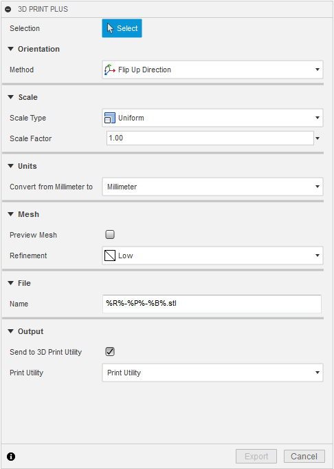 3D Print Plus and 3D Print Pro are extended versions of the 3D Print utility shipped with Autodesk® Fusion®.