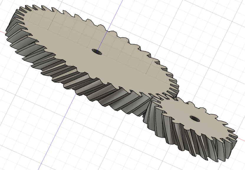 Each spur gear is created as a separate component. Therefore, it is possible to set up motion links between helical gears.
