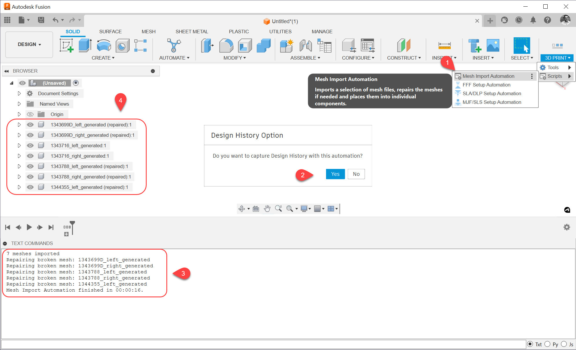 This Addin also adds a “3D Printing Essentials” folder with the following machines, print settings and templates to Fusion’s libraries: