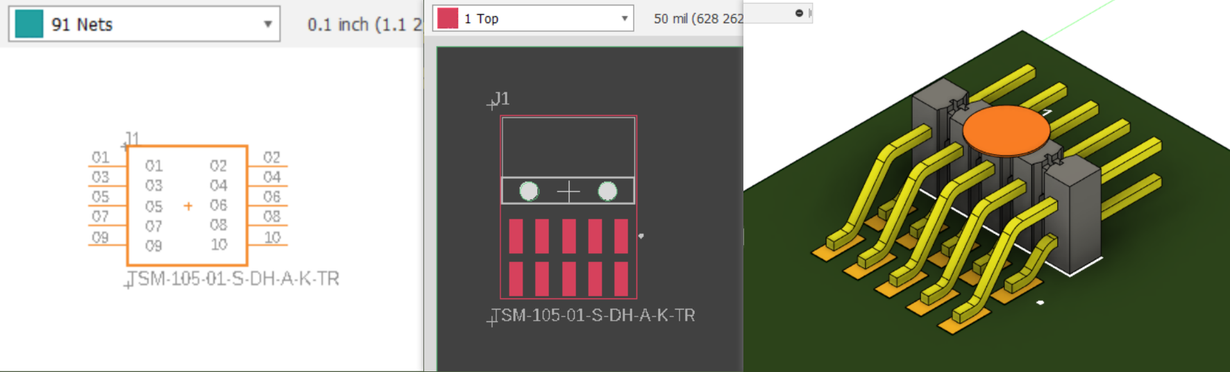 - Position and align the 3D model with the footprint. Once you're satisfied with the alignment, click Finish, click Save, then click OK.
