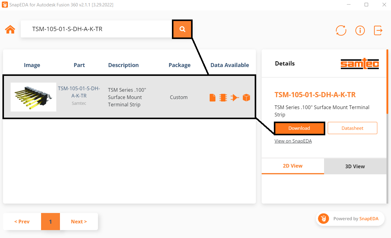 - Search for the part you want to add to your Library, Once you have found it, select it and click Download. On the next window, select Import Part.