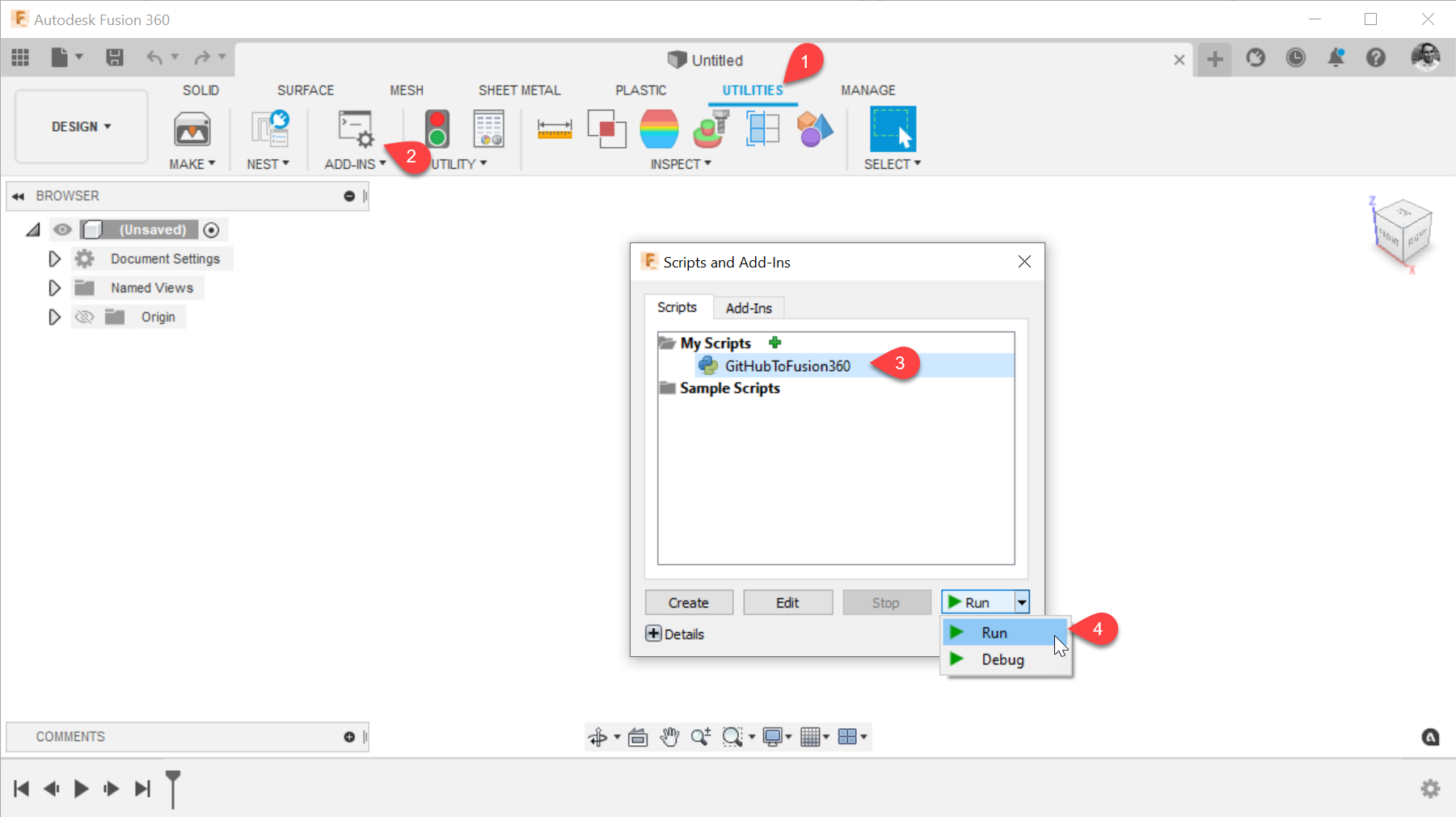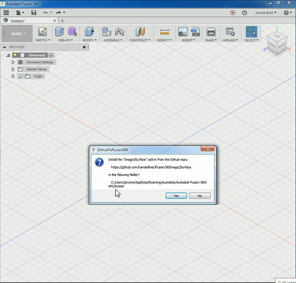 - Select GitHubToFusion360