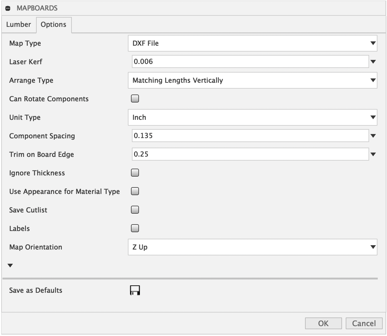MapBoards is an Autodesk® Fusion® add-in designed to help with the arrangement of 3D components onto material boards for efficient manufacturing. It can also help users generate cut lists and flat panel layouts as DXF files.
